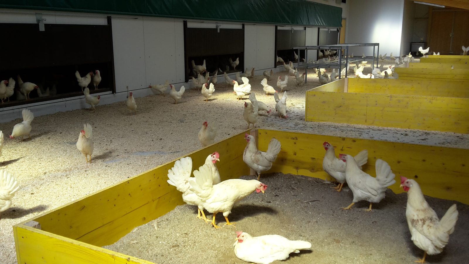 Elles disposent aussi d’un bâtiment moderne et respectueux où elles peuvent se déplacer librement du jardin d’hiver avec bac à bain de sable à la partie intérieure ou elles dorment, s’alimentent et pondent leurs œufs. Ceux-ci sont alors récoltés et préparés pour la vente.